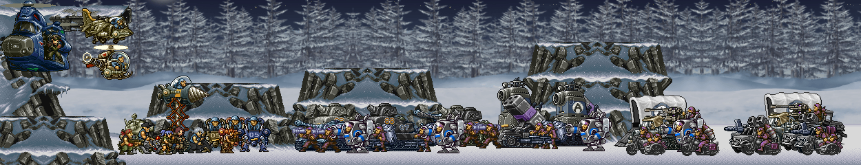 (Metal Slug Series Medley/メタルスラッグシリーズメドレー)|Squadron:Ikari Warriors (Colonel Ralf Jones, Major Clark Still, Private Leona Heidern, Staff Sergeant Whip (Staff Sergeant Seirah), Commander Heidern) 戦隊:怒(ラルフ・ジョーンズ大佐、クラークスチール少佐、レオナ・ハイデルン 二等兵、ウィップ下士(セラ下士)、ハイデルン 指揮官 、トレバー・スペイシー 軍曹、ナディア・カッセル二等兵),Peregrine Falcons Squad(Sergeant Trevor Spacey),S.P.A.R.R.O.W.S(Buck Private Nadia Cassel) ペレグリンファルコンズ分隊(トレバー・スペイシー 軍曹) 、スパローズ(ナディア・カッセル二等兵)| Secret Operation Mission And Rebellion Mission Assault Cutting Edge Assembly Irregular Gun Powder Maverick Strike Assassins Complex! (秘密操作任務と反乱ミ任務アサルト最先端の不規則な火薬のマーベリックストライクアセンブリ科学刺客複雑!) |Environment Frontline(環境戦線)|Battlefield of Kuraumuzu(戦場のクラウムズ)|Govement Army(Regular Army) Mercenary Troops(正規軍 傭兵部隊)|Govement Soldiers(正規軍 兵士たち(軍人))|Govement Army Tank(正規軍 戦車(タンク))|All Slugs(すべてスラッグ)|Govement Army Helicopter(正規軍 ヘリコプター)|Govement Army Transport Trucks(正規軍 輸送トラック)|Govement Army Transport Helicopter(正規軍 輸送ヘリコプター)|Military Forced Assault(軍用強制攻撃)|Cross Coup d'etat(クロスクーデター) | Operation Ikari( 作戦名 怒 ) |Animation(アニメーション), Mecha(メカ), Science Fiction(空想科学), Action(アクション), Military Anime(軍事アニメ)|Commando Shooter(コマンドーシューター)| Atlus USA |